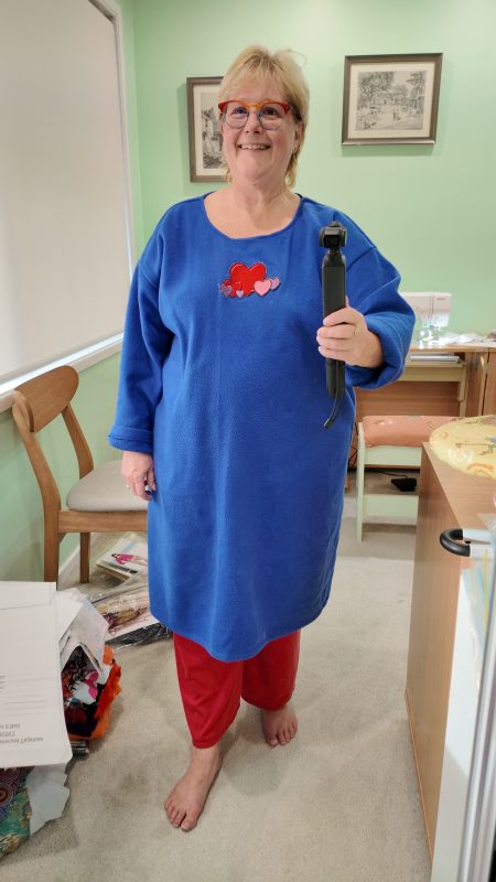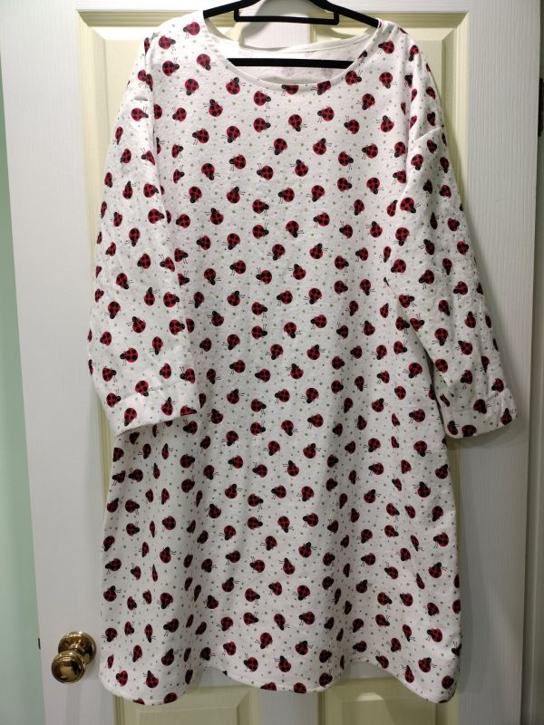 I have since created three additional long-sleeved nighties: two made from flannelette and one from polar fleece (which is super cosy), adorned with a design made using my Janome 9850 and attached with glue.