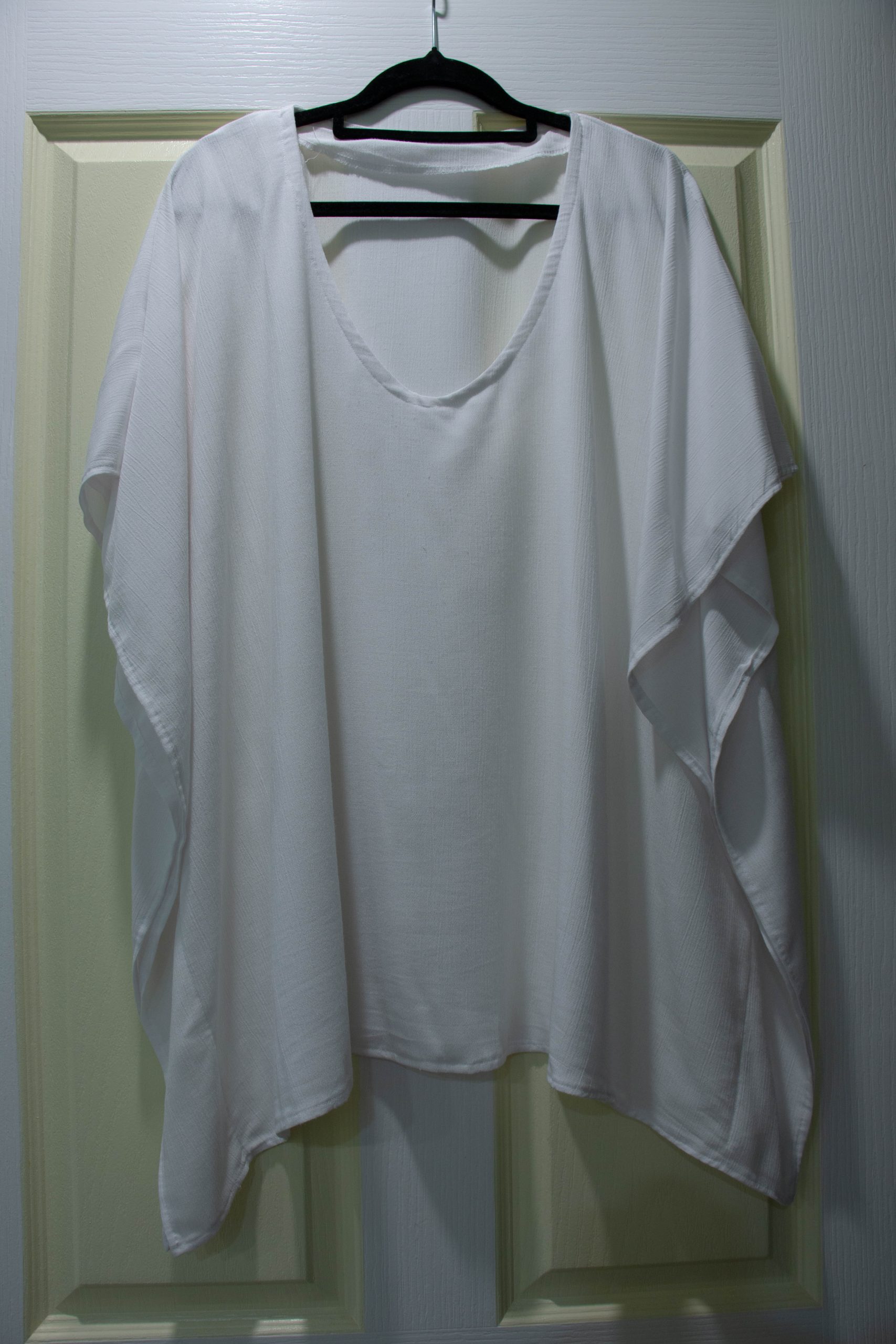 Next up, I made version B. This one was from a Satin Rayon Modal, and oh my goodness—the fabric is so soft and silky, it feels dreamy against the skin. Technically, this version is supposed to be a shorter take on option D, but since I’m on the shorter side, it basically looks like a full-length caftan on me. I also skipped the tie detail, which gave it a nice, simple flow.